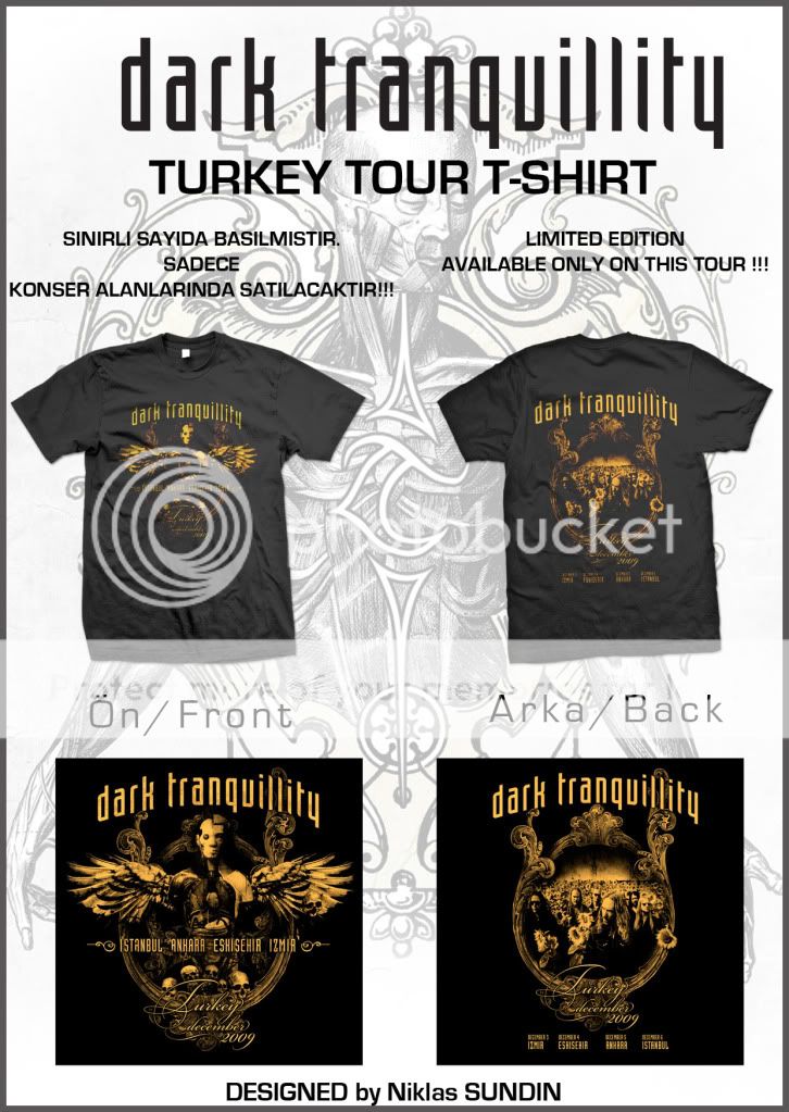 Dark Tranquillity Türkiye Turuna Özel T-Shirtler. Tasarımını grubun gitaristi Niklas SUNDIN’ın yaptığı t-shirtler, sadece konser mekanlarında satılacaktır.